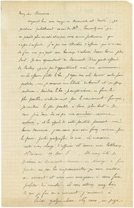 Son petit garçon «l'avant-dernier est dans son lit depuis 20 jours avec la fièvre typhoïde ; il est maintenant en convalescence». Il aimerait avoir le portrait des enfants de Pissarro, et «quelques eaux-fortes de vous». Il s'intéresse à la graphologie, «le caractère par les écritures», et il livre son analyse de l'écriture de Pissarro :