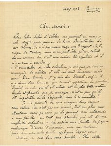 «À l'énumération de votre collection je vois que je suis en compagnie de maîtres et celà me rend heureux mais aussi bien timide. J'y vois des Daniel [de MONFREID] : enfin il y a donc des hommes qui savent apprécier la peinture. Daniel en outre qu'il est artiste est la plus belle nature loyale et franche que je connaisse»...