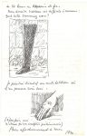 «Mon dernier tableau est difficile à nommer : quel titre trouveriez-vous? [9,5 x 6,3 cm, une jambe de pantalon avec soulier, devant un mur de pierres : ce sera Le Puits de la Vérité]) Je peindrai bientôt un autre tableau où l'on pourra voir ceci : [5 x 5,5 cm, un visage en relief sur le dos d'une main, ce sera Les Bijoux indiscrets] à peu près, ceci n'étant qu'un croquis préliminaire»...