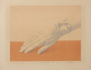 Lithographie avec titre autographe en bas au centre : «Les Bijoux indis- crets», justifiée en bas à gauche «H.C. 11/20», et signée «Magritte» en bas à droite.