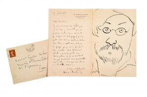 MATISSE HENRI (1869-1954). L.A.S. «Henri-Matisse» avec DESSIN, Issy-les-Moulineaux 25 janvier 1916, à Gustave KAHN ; 2 pages in-8 à son adresse, enveloppe.