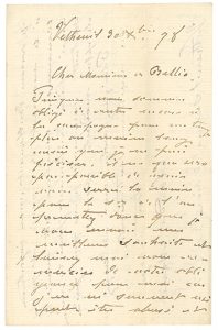 «Puisque nous sommes obligé de rester encore à la campagne pour un temps plus ou moins long mais que je ne puis préciser, il ne me sera pas possible de venir vous serrer la main pour le 1er de l'an. Permettez donc que je vous envoie mes meilleurs souhaits et laissez-moi vous remercier de votre obligeance pour moi car j'en ai souvent usé peut-être abusé et je vous dois beaucoup croyez donc à mes remercîments bien sincères et excusez-moi de vous avoir tourmenté si souvent. Je travaille beaucoup plus que jamais même car nous ne pouvons rester indéfiniment ici et dans une telle situation. La nature est toujours belle et c'est seulement dans le travail qu'il m'est possible d'oublier tous mes soucis car je commence à ne plus être un débutant et il est triste d'être à mon âge dans une telle situation, toujours obligé de demander de solliciter les affaires. Je ressens doublement mon infortune à ce moment de l'année et 79 va commencer comme cette année a fini, bien tristement pour les miens surtout auxquels je ne puis faire le plus modeste présent»...