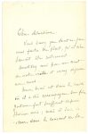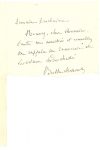 Elle demande des nouvelles de la malade. «Merci à tous de votre charmante réception et pardon aussi de notre invasion si sans façon. Nous sommes rentrés ravis et moi particulièrement hantée par vos grandes toiles»... [Octobre?] «Vous savez que tout ce que vous faites me plaît, qu'il n'en saurait être autrement. Avertissez moi par un mot de votre visite et venez déjeuner avec nous. Mon mari est dans le Midi où il accompagne son frère Gustave fort souffrant depuis plusieurs mois» ; il sera de retour la semaine prochaine...