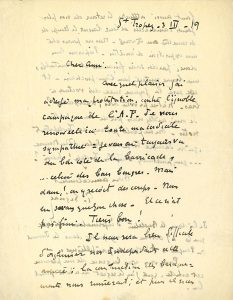Intéressante lettre au critique Louis Vauxcelles, contre l'Action Française, et à propos du Salon des Indépendants après la guerre.
