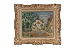 The artist often painted the village of Saint Cyr du Vaudreuil. Here he shows the church, with its chevet and bell tower, in the midday light.