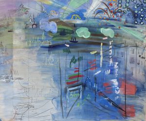 The Paris City Hall electricity company commissioned a monumental work from Dufy for the World Exhibition of Art and Technology in Modern Life held from 25 May to 25 November 1937 in Paris, and for the Universal Exhibition of 1937. The purpose of the work was to “highlight the role of electricity in national life, and in particular the primordial role played by electric lighting in society”, as specified by the commission. The huge majority of the time put into these monumental panels was spent on documenting the machines and producing studies, like the ones presented here.