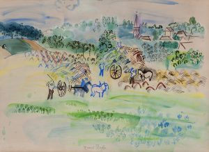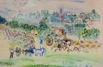 RAOUL DUFY (1877-1953). Moisson en Normandie, circa 1928. Gouache et aquarelle sur papier, signée en bas au centre. 50.2 x 65.4 cm - 19 3/4 x 25 3/4 in.