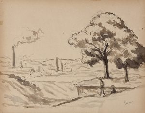 MAXIMILIEN LUCE (1858-1941). Paysage. Lavis d'encre et crayin, signé en bas à droite 21.5 x 28 cm - 8 1/2 x 11 in.