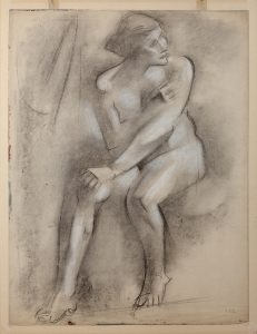 ANDRÉ LHOTE (1885-1962). Nu blond. Dessin au fusain et rehauts de craie blanche sur papier, marqué du cachet de la signature en bas à droite 62.5 x 48 cm - 24 5/8 x 18 7/8 in.