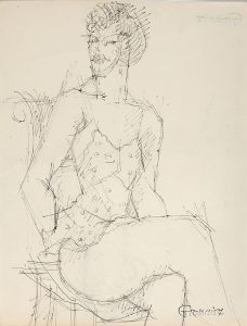 MARCEL GROMAIRE (1892-1971). Nu à la combinaison, circa 1943. Dessin à l'encre de Chine, marqué du cachet de l'atelier en bas à droite et au verso, certifié au verso par la famille de Marcel Gromaire. Au verso, une étude de profil. 32.5 x 25...