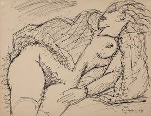 MARCEL GROMAIRE (1892-1971). Nu couché II. Dessin à l'encre de Chine, marqué du cachet de l'atelier en bas à droite, certifié au verso par la famille de Marcel Gromaire 24.5 x 32 cm - 9 5/8 x 12 5/8 in.