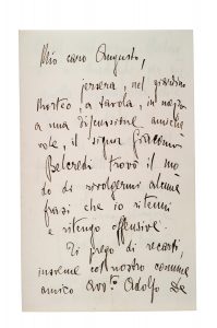 Je te remercie de ce service pour mon honneur ;et je te serre la main. Bien à toi toujours, Gabriele d'Annunzio».