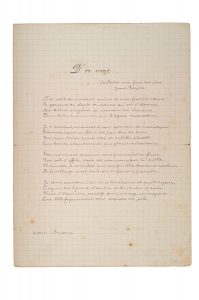 BRETON ANDRÉ (1896 - 1966). D'or vert, poème autographe S.l., [vers 1914]. 1 page in-4 à l'encre sur papier quadrillé. (Légères rousseurs).