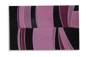 Chemise de carton ondulé. Étui bordé de peau et papier noir et mauve.