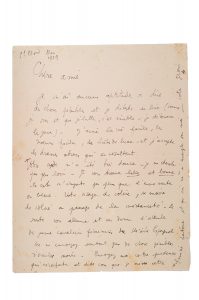 «Votre visite m'a été très douce - je ne cherche pas plus loin. Je vous trouve belle et bonne le reste ne m'importe pas plus que l'encre verte ou bleue. Votre visage de colère, se moire de colère au passage de la méchanceté. Le reste vous allume et vous donne l'allure des jeunes cavaliers féminins du théâtre Espagnol. Ne m'envoyez surtout pas de choses pénibles, d'oracles noirs. Envoyez-moi votre présence qui réconforte et dites-vous que je mérite cette infirmière fantôme et que rien ne m'aveugle sur moi».