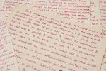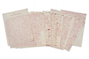ÉLUARD PAUL (1895-1952), HUGNET GEORGES (1906-1974). Sous le jour surréaliste, manuscrit autographe. S.l.n.d., 10 pages et demi sont de la main d'Eluard (à l'encre rouge) et 8 pages de celle de Hugnet sur papier quadrillé.