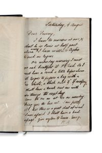 Seconde édition. Lettre autographe à l'encre en anglais montée sur onglets signée «M» à «Dear Fanny», relative à un rendez-vous.