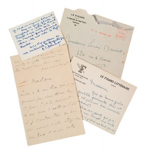 • la carte autographe signée de Mme Lucien Daudet offrant cette lettre à Maurice Noël,
