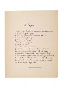RILKE RAINER MARIA (1875-1926). L'Enfant, poème autographe en français. S.d., 1 page in-4 à l'encre.