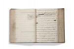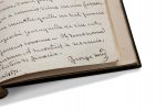 Nombreuses ratures et ajouts. Reliure postérieure signée «PS» au contreplat, maroquin vert, dos à 5 nerfs orné, caissons ornés de fleurons dorés sur les plats, doublures et gardes moirées (premier plat détaché).
