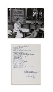 La photographie de Léon Herschtritt la représente à la terrasse d'un café, vers 1960, tirage argentique, 23,5 x 28 cm.
