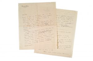 SAINT-EXUPÉRY ANTOINE DE (1900-1944). Brouillon de lettre sur des expériences de colombophilie. [Casablanca], [vers 1927], 2 pages et quart in-4 à l'encre, à en-tête de la brasserie «Le Roi de la Bière». (Traces de pliures)