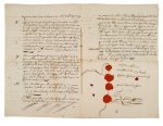5 pages et demie in-fol. en un cahier retenu par un fil de soie lui-même fixé par 4 cachets de cire rouge, sceau sous papier aux armes de la ville de Bienne.