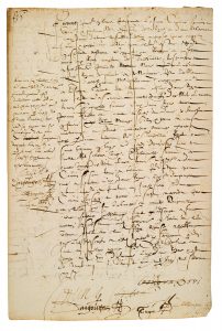 1 page in-fol. (biffée de 2 traits de plume, ainsi que les signatures).