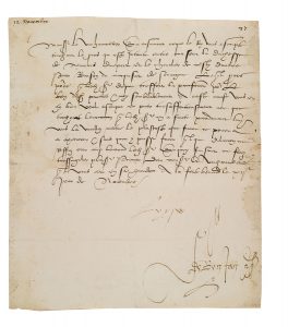 A ceste cause vous en ay bien voulu escripre et prier tresaffectueusement ace que touchant levocation que ledit Sgr en a faicte pardavant luy vous la vueillez mettre le plustost que faire se pourra a execution et sans quon y puisse faire quelque delation ne reffuz car ainsi lentend ledit Sgr»... [Le Président Jean de SELVE (1475-1529) magistrat et diplomate.