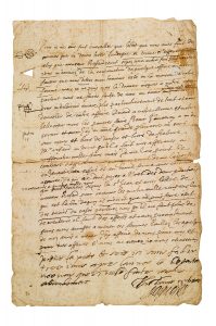 reste de cachet de cire (fentes aux plis, un bord effrangé et deux petits trous).