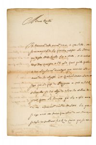 (légère fente au pli réparée) ; la partie autographe en italien.