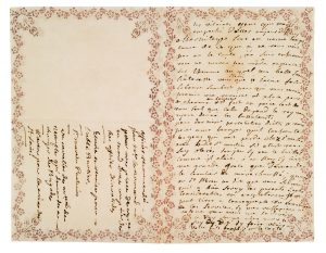 POMPADOUR Antoinette Poisson, Marquise de (1721-1764) maîtresse de Louis XV. L.A., à un Comte ; 1 page in-8 à bordure florale vieux rose.