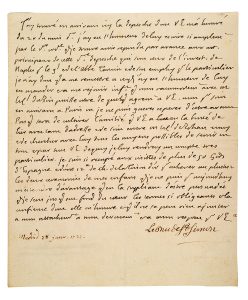 SAINT-SIMON Louis de Rouvroy, Duc de (1675-1755) Duc et Pair, mémorialiste. L.A. (minute), [Madrid 28 janvier 1722, au Cardinal GUALTERIO] ; 1 page in 4 (signature apocryphe ajoutée).