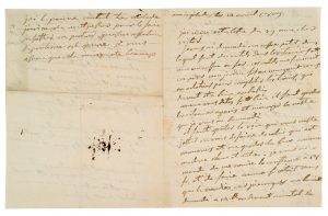 «Je vous ai demandé ce que vous pensiez de la caisse des artisans car il me faut des revenus et je voudrois y placer dix mille fr. Je ne sais pourquoi vous me dites que je suis méfiant avec vous, tandis que je vous ai donné tant de preuves du contraire et que vous etes le seul qui connoissiés mes affaires».