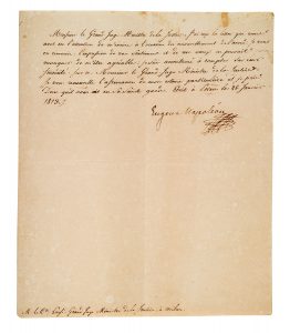 UGÈNE DE BEAUHARNAIS (1781-1824) fils de l'Impératrice Joséphine, Vice-Roi d'Italie. L.S. «Eugene Napoléon», Posen 28 janvier 1813, au Comte LUOSI, Grand- Juge, Ministre de la Justice, à Milan ; demi-page in-4 (papier un peu bruni).