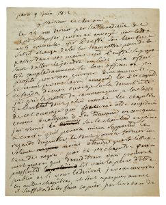 Par ce 1er chapitre qui n'est gueres que d'erudition vous pourrez pressentir s'il vaut la peine d'être publié et si vous le desirez je vous enverrai les autres chapitres»... Dans un autre chapitre il a analysé «le roman ingenieux du docteur Whiterspoon que jai reçu tout recemment d'Amerique il a pour objet les domestiques, quelques autres renseignemens sur cet objet sont parsemés dans mon traité. - Rien de nouveau ici en littérature nous vivons à cet egard sur notre ancienne reputation [...] je vois avec plaisir qu'en Allemagne le même zele pour les sciences et les lettres se soutient - j'ai reçu de Casan des details nouveaux sur les Roskolnicks et l'analyse d'une eau minerale située à quelque distance de cette ville», qu'il a communiquée à son confrère Vauquelin..