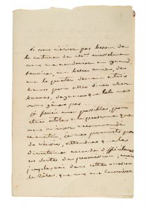 Si vous n'aviez pas besoin de la voiture de Mme Mosselman vous me renderiez un grand service, ma belle amie, de me la preter demain a trois heures pour aller dîner chez BARRAS, de grace que cela ne vous gêne pas. Je ferai mon possible, pour etre utile a la personne que vous m'avez recommandé ce matin, je ne promets pas de réussir, attendue que le directoire accorde difficilement ces sortes de permission ; mais jemployrai dans cette occasion le zèle, que vous me connoissez lorsqu'il sagit surtout de rendre service à vos amis. Bonsoir ma belle amie, je vous embrasse et vous aime de tout mon coeur»... Elle ajoute en post-scriptum :