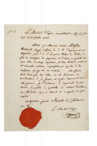 LANNES Jean (1769-1809) Duc de Montebello, Maréchal d'Empire. P.S. «Lannes» comme «Maréchal d'Empire, Commandant en chef le 5me corps de la Grande Armée», Q.G. de Rastald 5 vendémiaire XIV (27 septembre 1805) ; 1 page in 4, sceau de cire...