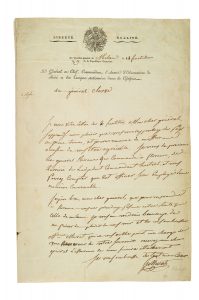 MURAT Joachim (1767-1815) Maréchal d'Empire, roi de Naples. L.A.S. «J Murat», Q.G. de Milan 14 fructidor IX (1er septembre 1801), au Général CLARKE à Turin ; 1 page grand in-fol. à en-tête Le Général en Chef, Commandant l'Armée...