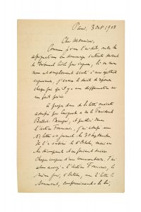 DREYFUS Alfred (1859-1935) officier, injustement accusé d'espionnage. L.A.S. «ADreyfus», Paris 3 octobre 1908 ; 2 pages et demie in-8.
