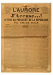 Lettre au Président de la République, in L'Aurore, jeudi 13 janvier 1898 (2e année, n° 87, 4 p.) ; édition originale du texte (sous montage, déchirures et pliures, répar. au scotch).