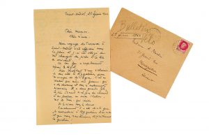 MOULIN Jean (1889-1943) Préfet, héros de la Résistance. L.A.S. «Jean», Saint-Andiol 25 février 1942, à SA MÈRE Mme Antoine MOULIN à Montpellier ; 1 page et demie in-8 sur papier jaune, enveloppe.