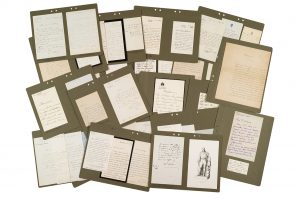 Marguerite Bellanger (2) ; Charlotte Bonaparte Princesse Primoli ; Napoléon Bonaparte dit le Prince Napoléon, sa femme Marie-Clotilde de Savoie (2), leur fils le Prince Louis ; Napoléon-Charles Bonaparte ; Lucien Bonaparte-Wyse (2, plus carton d'invitation) ; Comte Adolphe Clary (2, de Chislehurst, dont une au nom du Prince Impérial) ; Charles-Étienne Conti (secrétaire et chef de cabinet de Napoléon III) ; comte de Girardin (en-tête Maison de S.A.I. le Prince Napoléon) et Yolande de Pracomtal (dame de S.A.I. la Princesse Napoléon) ; Philippe Régnier duc de Massa, la Duchesse de Massa, née Madeleine Coppens ; Pauline de Metternich (2) ; Eugénie Bonaparte Princesse de la Moskowa (2) ; Michel-Louis-Félix Ney Prince de la Moskowa (lettre à lui adressée, sur des souvenirs de son père) ; Émile Ollivier (6) ; Victor Fialin de Persigny (5) ; Franceschini Pietri (4) ; Ratomski, Ferrand et Mme de Fly (en-têtes Maison de S.A.I. Mme la Princesse Mathilde) ; Caroline Duchesse de Tascher de La Pagerie ; Louis Trochu (3) ; Jean-Jacques Uhrich (2) ; Jean-Baptiste-Philibert Vaillant ; etc