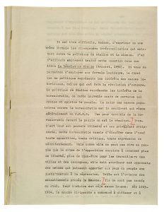 TROTSKI Léon (1879-1940) Théoricien révolutionnaire et homme politique russe. L.S. «Leon Trotsky» avec 2 CORRECTIONS autographes, Coyoacán 6 mars 1938, [à la journaliste Henriette CELARIÉ] ; 4 pages in 4 dactylographiées et agrafées...