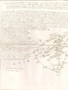 La carte présente, outre des noms de lieux et quelques notes brèves, de nombreuses lettres auxquelles renvoie le récit « tous ces environs ne furent pendant ce laps de temps quataques et surprises nocturnes de notre part comme de celle de l’enemi toujurs au bivouac, tres mal habiliés, mal nouris et encore plus mal paÿés.