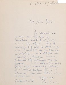 Exemplaire enrichi d’une lettre autographe signée de Jean Grenier