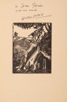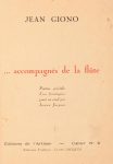 [JACQUES Lucien]. GIONO (Jean). … accompagnés de la flûte. Sans lieu (Les Cyprès de Saint Jean, Grasse), Éditions de l’Artisan, 1924. Plaquette in-4 de 16 poèmes, chemise de papier jaspé. Frontispice sur bois de fil de Lucien Jacques.