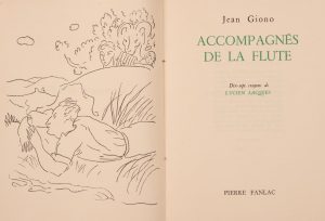 [JACQUES Lucien]. GIONO (Jean). … accompagnés de la flûte. Périgueux, Pierre Fanlac, 1951. In-8, broché, charnières renforcées.