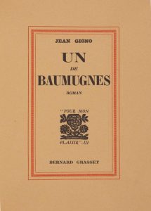 GIONO (Jean). Un de Baumugnes. Paris, Bernard Grasset, 1929. In-12, broché, couverture rempliée.