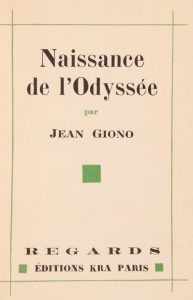 GIONO (Jean). Naissance de l’Odyssée. Paris, Collection Regards n°1, Simon Kra, 1930. In-12, reliure demi-maroquin rouge à bandes, gardes de papier marbré, tête dorée, non rogné.